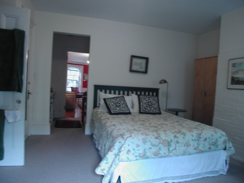 This spacious unit offers a queen bed plus a queen sleep sofa, carpeting in the bedroom and hardwood floors in the living room, a full kitchen, full bath with a shower, and access to free laundry in the building.
